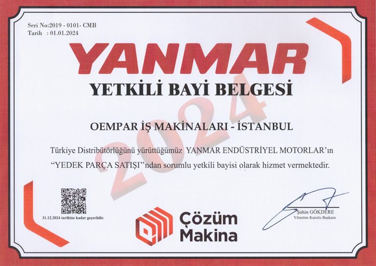 Firmamız, faaliyet gösterdiği sektördeki yetkinliğini ve güvenilirliğini belgelendiren birçok sertifikaya sahiptir. Develon Ana Bayii, Case ve New Holland Yetkili Satıcılığı, Carraro ve Sensei Bölge Bayiliği gibi güçlü iş ortaklıklarımız, alanında lider markalar tarafından yetkilendirilmiş olduğumuzun bir göstergesidir.